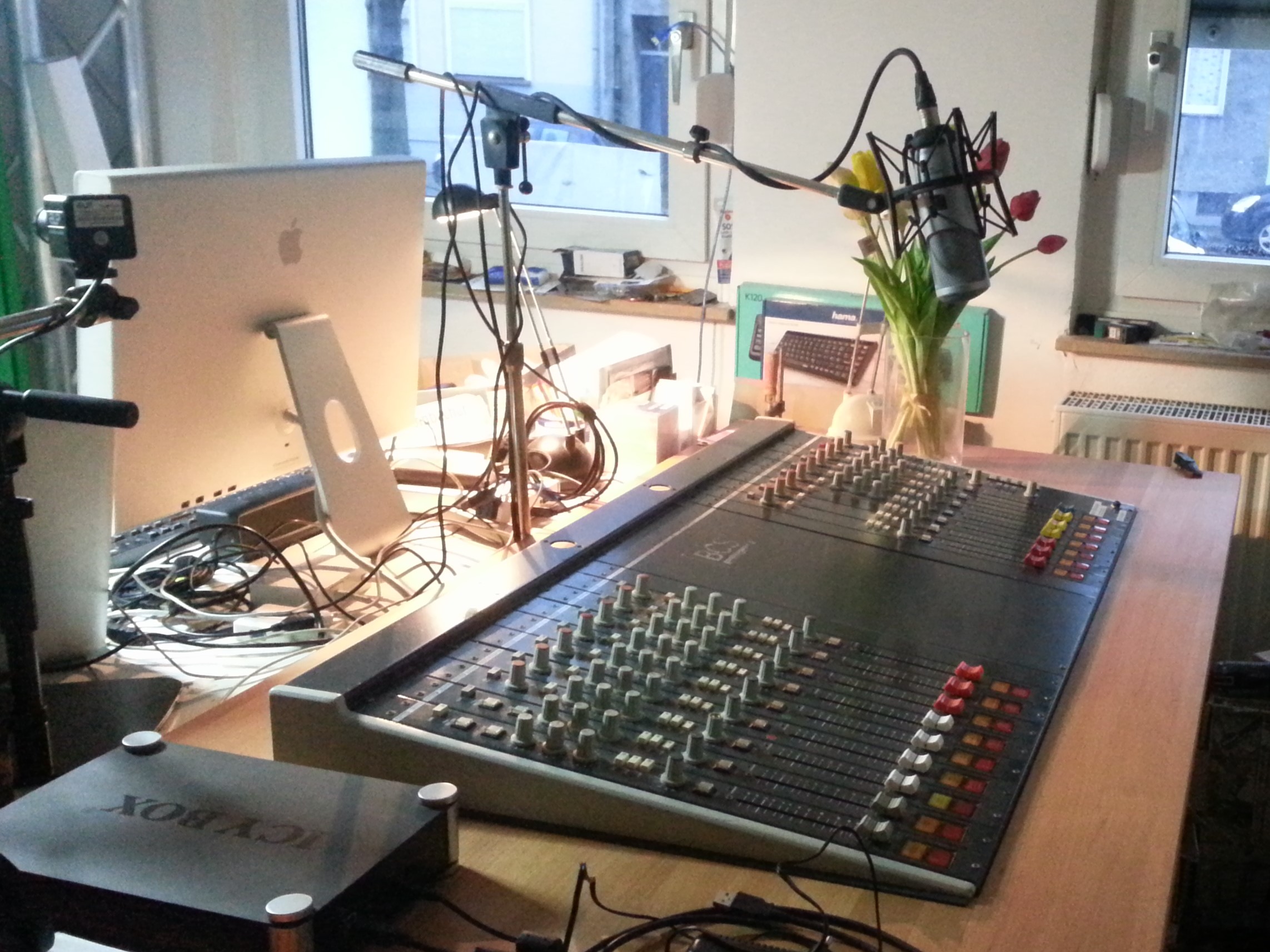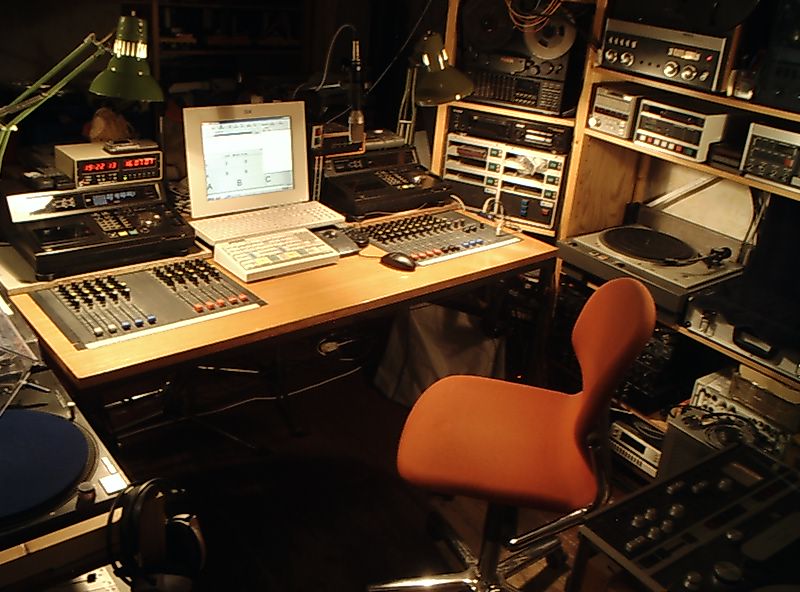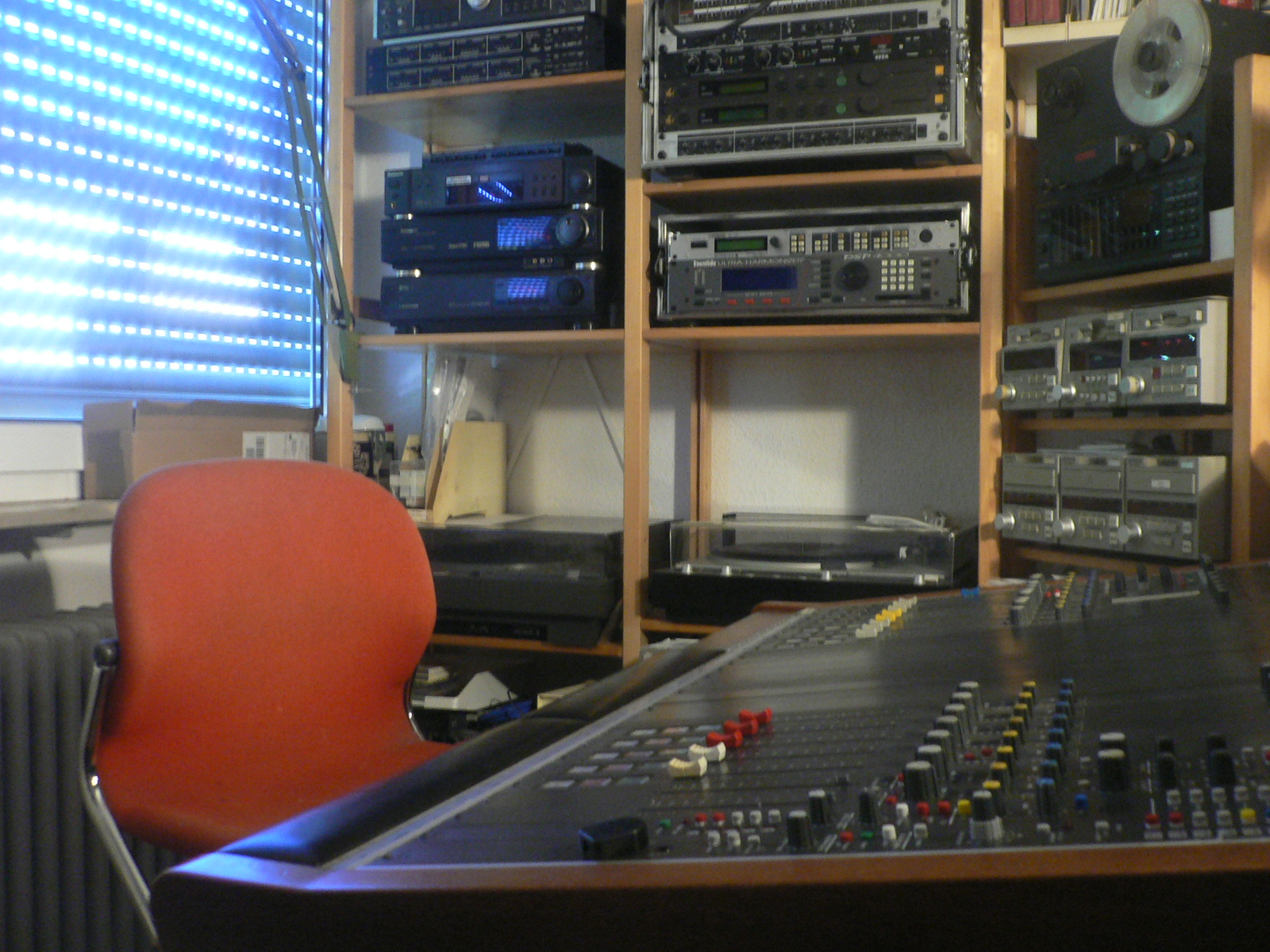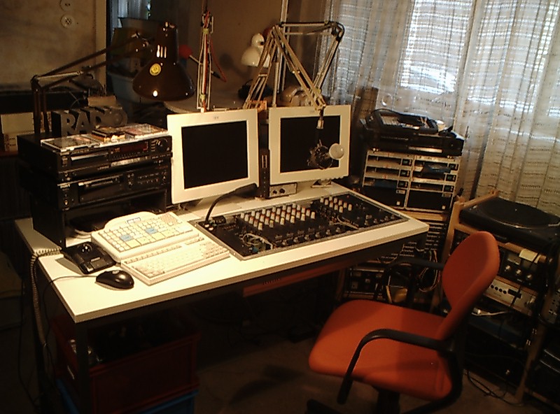 Studio auf Schalke Gelsenkirchen (2007)Damaliger Prototyp für professionellen digitalen Sendeablauf, erschwinglich auch für kleinere Stationen (Zuspieler digital, Pult noch analog) |